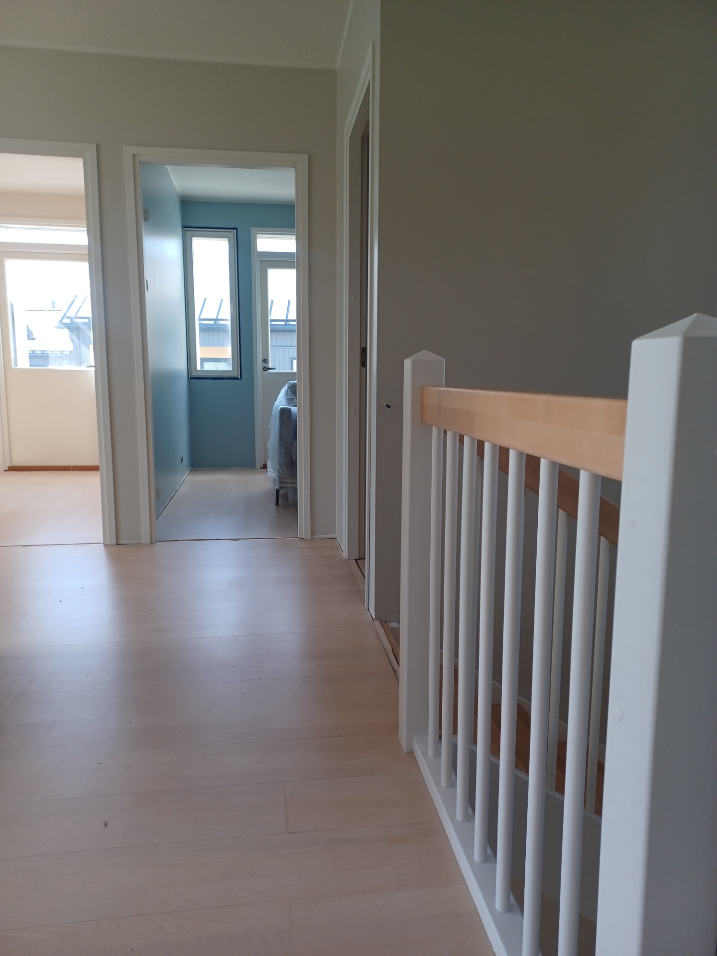 Yläkerran uudistusprojekti sisältää kahden makuuhuoneen ja ylä-aulan lattian uusimisen. Työhön kuuluu olemassa olevien listojen ja lattian purku, sekä uuden vinyylilankkulattian asennus. Vinyylilankku on erinomainen valinta, sillä se yhdistää kestävyyden ja helppohoitoisuuden.